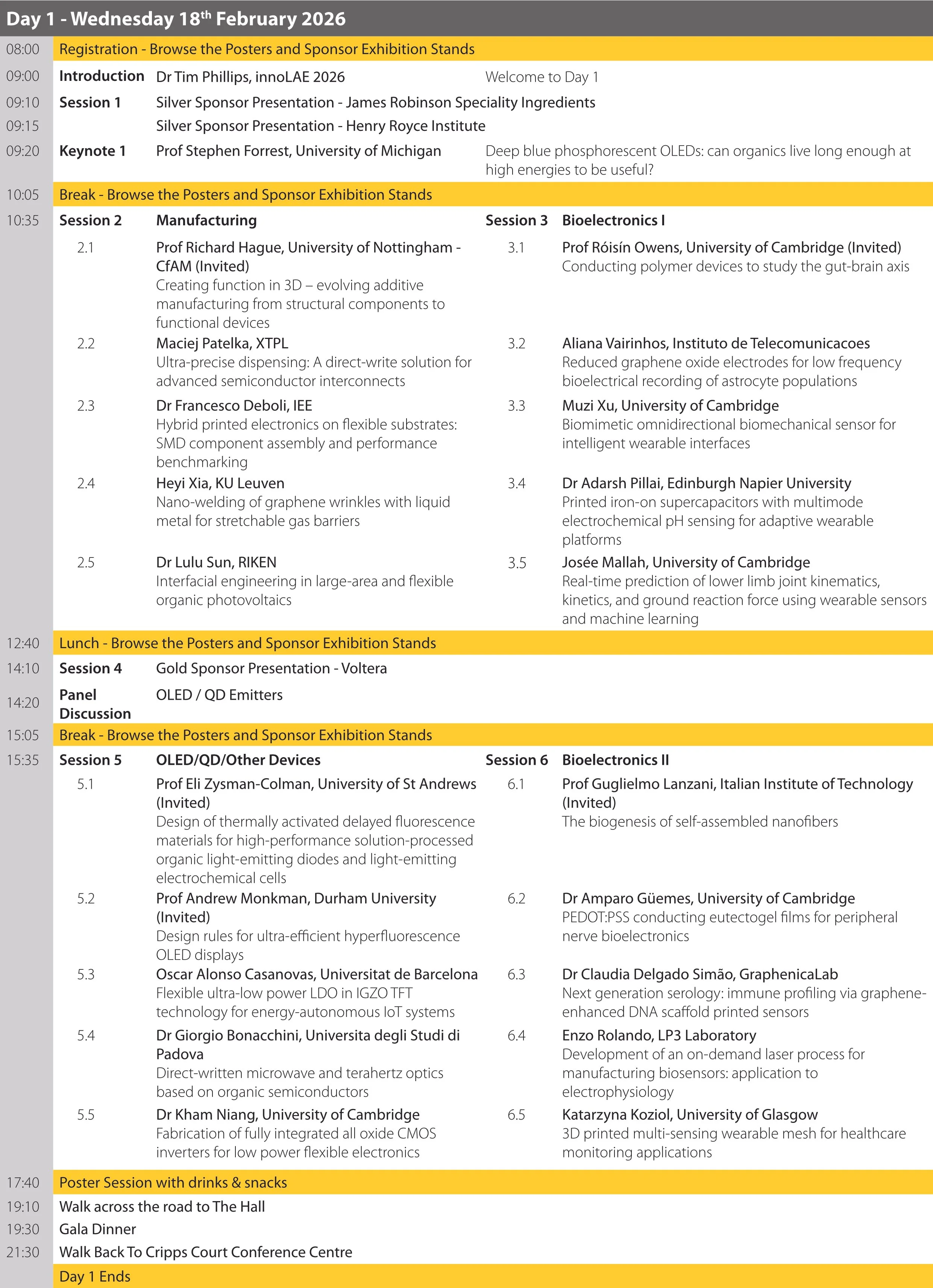 DAY 1 - WEDNESDAY 18 FEBRUARY 2026